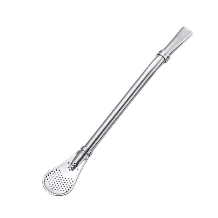 2 in 1 Drinking Straws (1 Pcs) with Filter Spoon, Stainless Steel Reusable, Leaf Tea Coffee Stirrer Stick, Cocktail Strainer Pipe Stirring Silver
